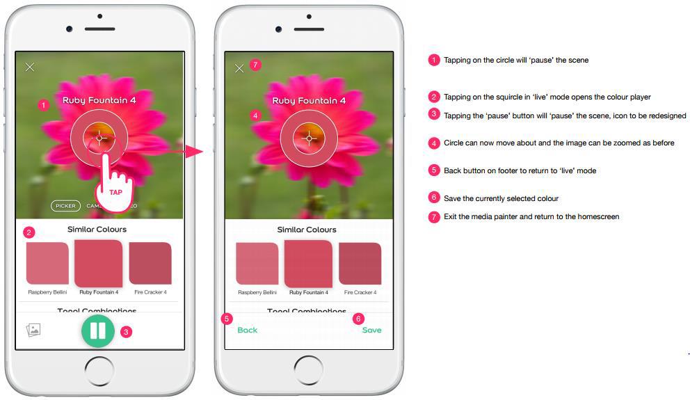 A revamped color picker, allowing users to pick a color by tapping the target wheel, and with clearer navigation buttons/action bar