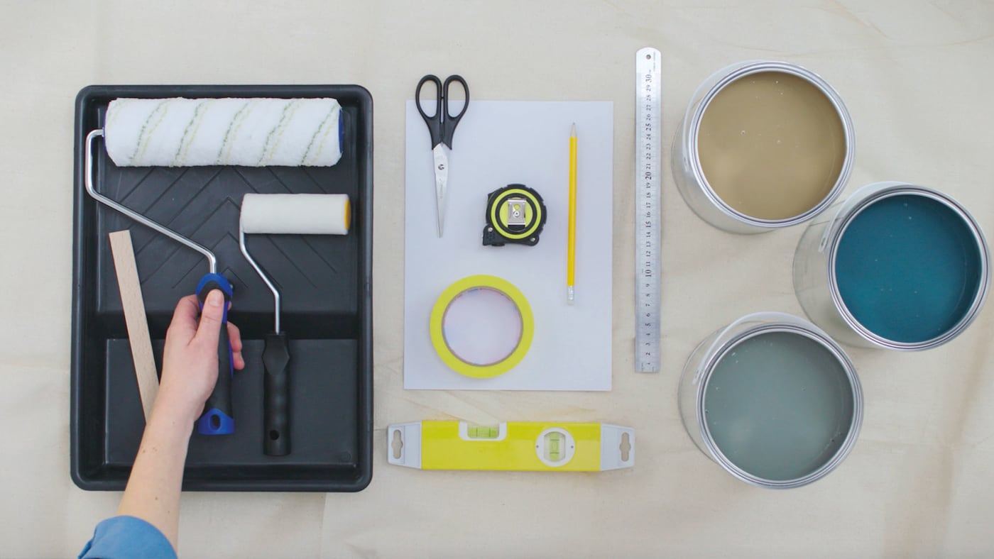 For best results start with a freshly painted wall. Not sure which shade to choose? See instantly how the latest Colour of the Year 2019 palettes could look on your wall with the free Dulux Visualizer app. Once you’ve applied your new background colour and the paint is completely dry, you’re ready to create your shapes.