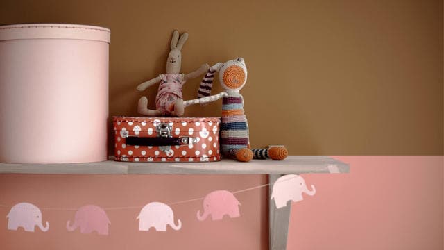 To create a look that will transition seamlessly from baby to toddler and beyond, choose one hue for the walls and offset it with a trim painted in the other colour. Or you may like to use the brighter hue – sherbet orange, for example – to create a feature wall or striking striped paint effect.