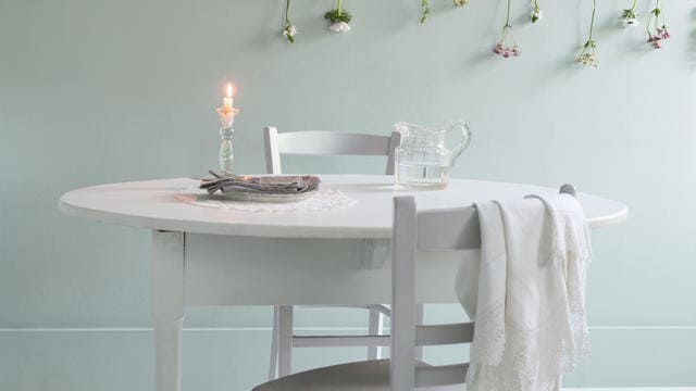 The aim is to make the room appear larger and lighter, so avoid any dark colour on the ceiling. White is always a safe choice, but you could also go for pale tones of other Dulux paint colours, from greens to golds.