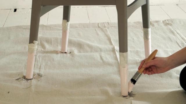 Use your chosen second Dulux colour to paint the legs of your chairs. Make sure you paint the second colour over the masking tape line slightly – this will create a crisp line under the tape.