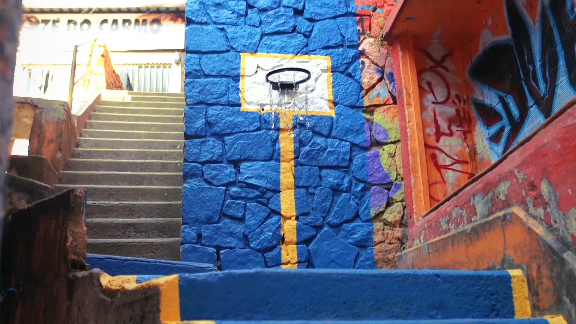 Transforming underused urban location into sporting courts, just by adding a splash of paint. The program was launched in the famous Santa Maria favela…